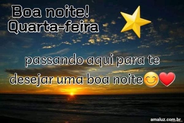 Boa noite quarta-feira abençoada! Que sua noite seja imensamente feliz aquelas que encha mesmo seu coração de muito alegria, e sempre esteje perto de quem você ama pois você levará alegria a eles também!