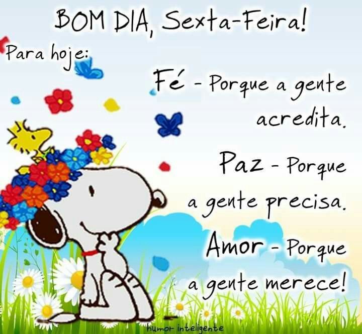 Feliz sexta-feira! Nada melhor que começar o dia com essas três palavrinhas: Fé, paz e amor. São palavras pequenas, mas fazem um grande efeito na vida de quem as deseja.