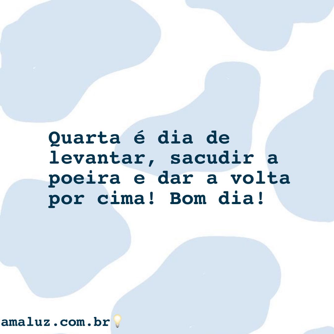 Quarta é dia de levantar da cama e sacudir a poeira dos pés dando a volta por cima!! Bom dia amados!