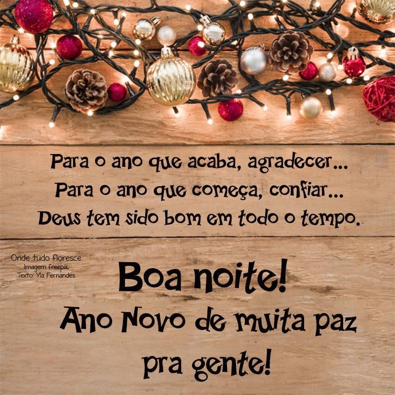 Para o ano que acabar agradecer… Para o ano que começa, confiar… Afinal Deus tem sido bom em todo tempo e vai nos ajudar! Boa noite, feliz ano novo!