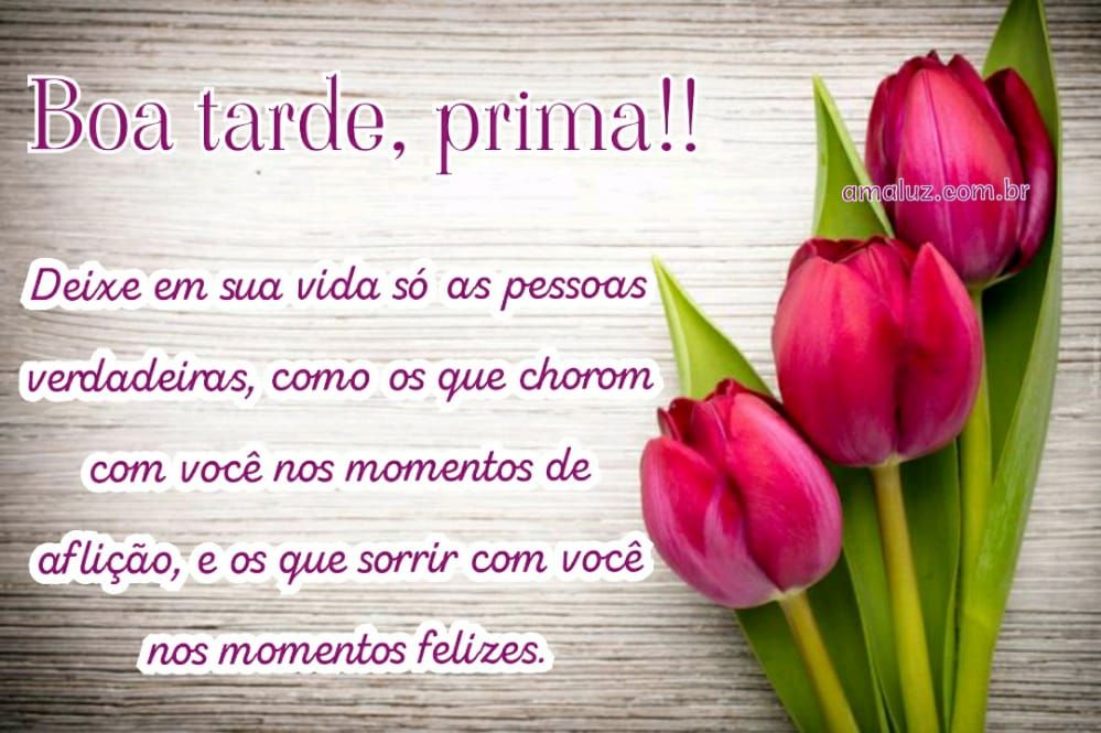 Tenha uma ótima tarde prima amada, que a felicidade seja contigo nesse finalzinho do dia e sempre! Boa tarde prima.
