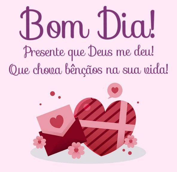 Olá, que o meu bom dia chegue até você da forma em que eu mandei, embalado de amor, enfitado de carinho, com um tampa de afetos e cheio de felicidade dentro!