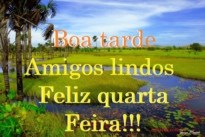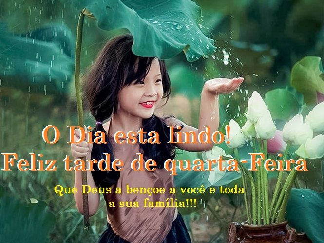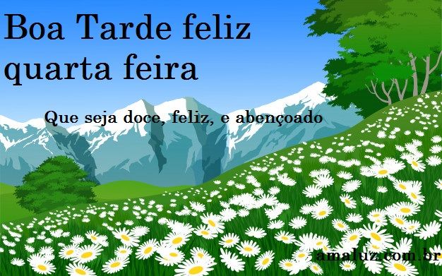 Boa tarde, Feliz Quarta-feira! Desejo que a sua tarde seja abençoada e guiada pelas mãos de Deus; assim terei a certeza de que estarás bem.
