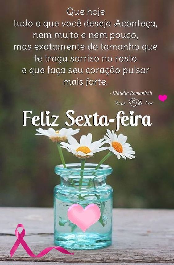 Excelente final de semana pra você e toda a sua família! Desejo que a sua sexta-feira seja repleta de muito amor e carinho… E que a felicidade seja constante na sua vida.