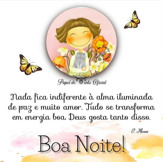 Boa noite! Que hoje Deus zele pela tua noite, ilumine tua mente, alivie o peso dos teus problemas… Conceda paz e conforto para que no amanhã que está por vir, consiga vencer mais uma batalha diária com sorriso e alegria no viver!