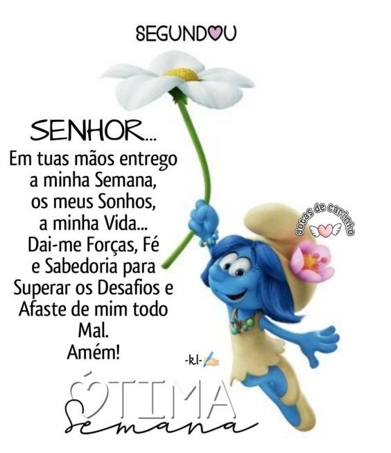 Segundou! Senhor… Em tuas mãos entrego a minha semana, os meus sonhos, a minha vida… Dai-me forças, fé e sabedoria para superar os desafios e afaste de mim todo mal. Amém! Ótima semana!