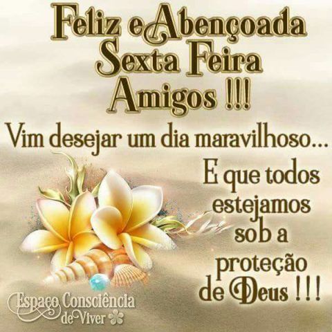 Feliz sexta-feira! E que estejamos sob a proteção e os cuidados de Deus… Para que assim o nosso dia venha ser de paz e tranquilidade.