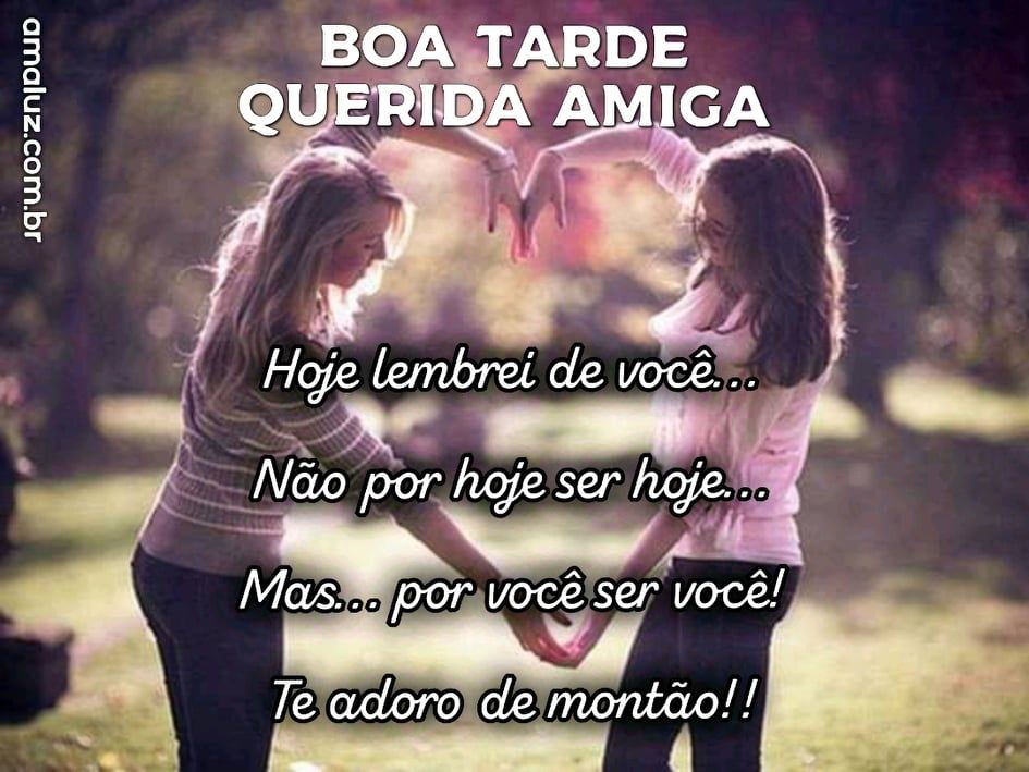 Boa tarde querida amiga, hoje me lembrei de você mas não só hoje como quase todos os dias somente pelo fato de você ser assim, de uma forma especial em meu coração. Te adoro de montão!