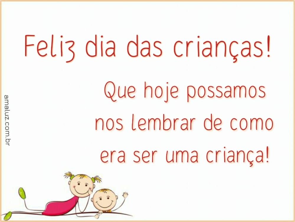 E para esse dia tão especial, que possamos voltar a ser como criança e aproveitar esse dia com alegria, feliz dia das crianças.