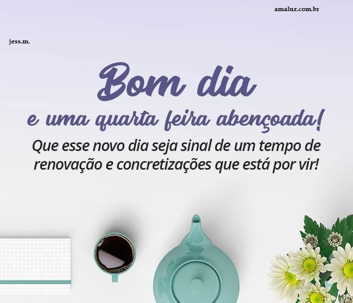 Quarta-feira se iniciando e que você viva cada segundo desse dia intensamente, que tenha alegrias e infinitas bênçãos. Pois assim ficará mais fácil para você conquistar suas vitórias.