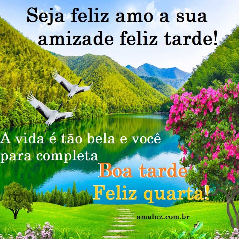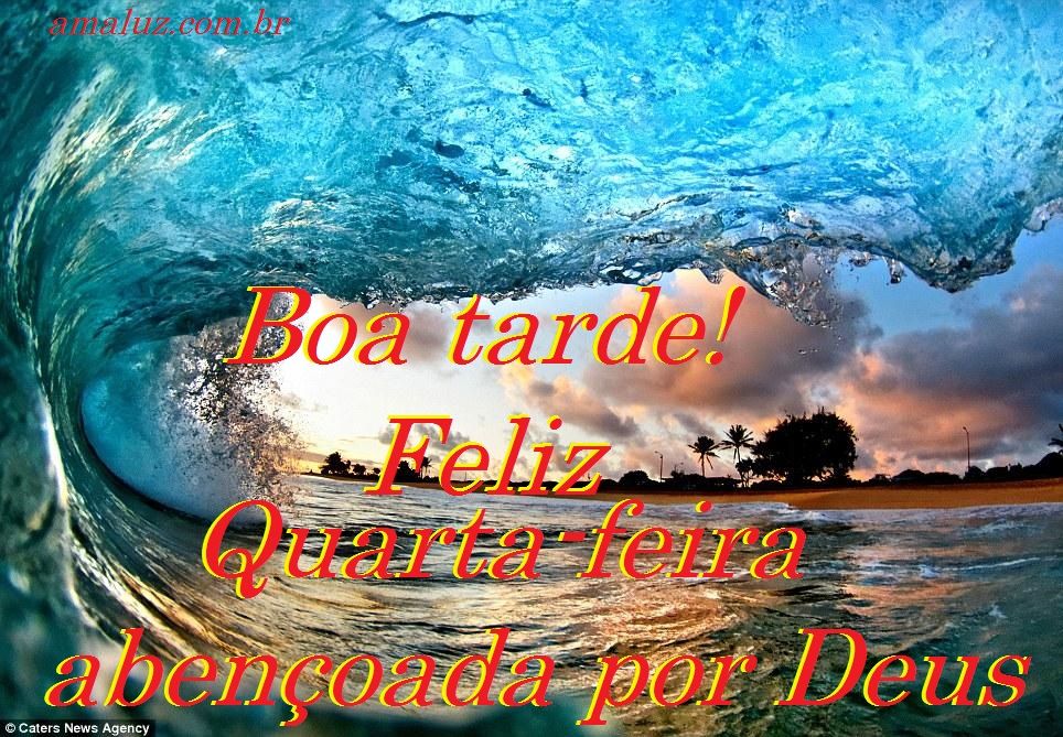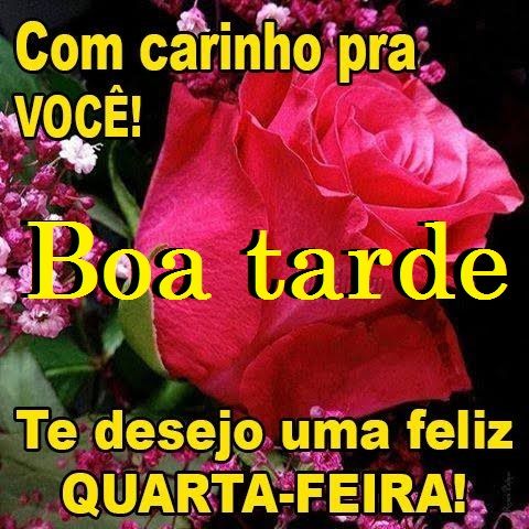 Boa tarde, Feliz Quarta-feira! Desejo que a sua tarde seja abençoada e guiada pelas mãos de Deus; assim terei a certeza de que estarás bem.